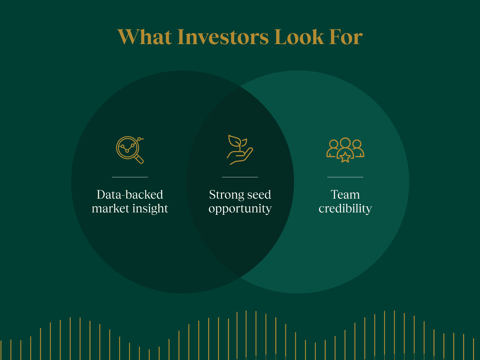 At seed stage, you need credible team DNA and data supported market insights. These two signals tell investors that the opportunity is real and that you are the right people to pursue it.